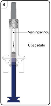 Se gjennom visningsvinduet til den ferdigfylte sprøyten. Væsken inni skal være en klar til lett opaliserende, fargeløs til lett gulaktig eller lett brunaktig oppløsning. Du vil kanskje se luftbobler i væsken, noe som er normalt. Ikke forsøk å fjerne luften.