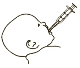 Plasser sprøyten inn i babyens munn som vist på bilde 4. Skyv stempelet i sprøyten forsiktig ned.