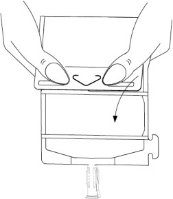 Press den brettede posen rett under kanten på oppløsningen for å bryte forsegling nummer to, slik at væsken fyller infusjonsporten (figur 4).
