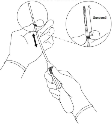 3. Mens glideren holdes i ytterste posisjon, plasseres oversiden av måleringen slik at lengden tilsvarer sondemålet av uterus (Figur 3).