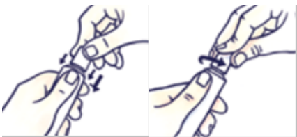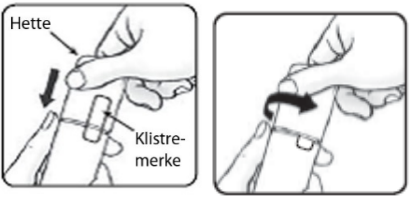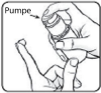 Før første gangs bruk klargjør du pumpen ved å trykke ned flere ganger til legemidlet kommer ut på fingertuppen din.