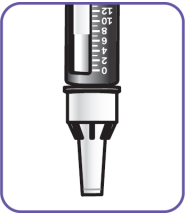 3. Trykk på injeksjonsknappen. Du bør se «0» på linje med hakket i doseringsvinduet. Hvis du ikke ser «0» på linje med hakket trykker du på injeksjonsknappen til den er på linje.