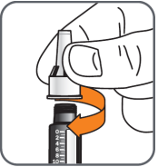 2. Skru av stempelstangbeskyttelsen eller den tomme legemiddelsylinderampullen i retning mot klokka, og kast den i beholderen for skarpe gjenstander.