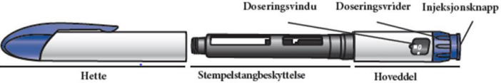 Merk: Pennen og sylinderampullen med blandet oppløsning skal hele tiden oppbevares i kjøleskapet, bortsett fra når du klargjør eller injiserer legemidlet.