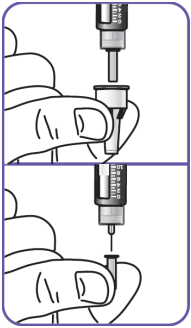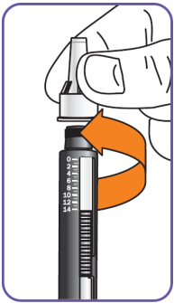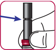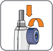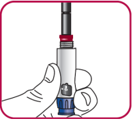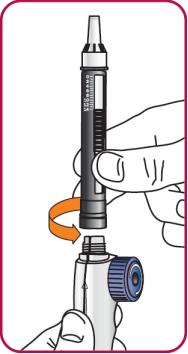 8. Med den ytre kanylehetten pekende oppover, skru sylinderampullen på pennen i retning med klokka til det ikke er noe mellomrom igjen mellom sylinderampullen og pennen.