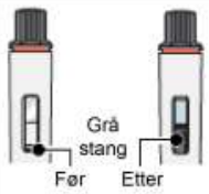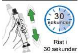 Ikke rist pennen før den grå stangen har stoppet helt for å oppnå nøyaktig dosering.