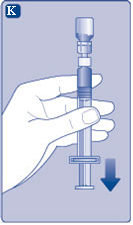 Injeksjon i et CVAD kan kreve bruk av en steril 10 ml plastsprøyte til å trekke opp den rekonstituerte oppløsningen. Dette skal gjøres rett etter trinn J.