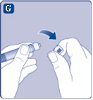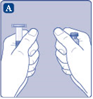 Fjern sprøytehetten fra den ferdigfylte sprøyten ved å bøye den ned til perforeringen brytes.
