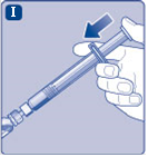 Trekk stempelstangen litt nedover slik at den rekonstituerte oppløsningen dras inn i sprøyten.