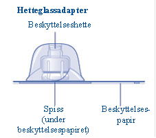 Ta hetteglasset, hetteglassadapteren og den ferdigfylte sprøyten ut av kartongen. La stempelstangen ligge urørt igjen i kartongen.