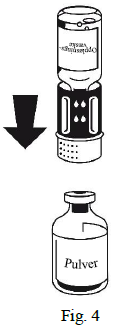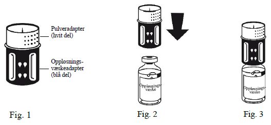 1. Ikke bruk preparatet direkte fra kjøleskapet. La oppløsningsvæsken og pulveret i de uåpnede hetteglassene få romtemperatur.