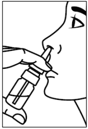 5. Før spissen rett inn i neseboret og spray én gang. Pust normalt gjennom nesen uten å trekke pusten hardt.