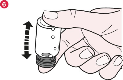 6. Sett gummiproppen på plass igjen, og vend hetteglasset forsiktig to ganger opp og ned (se figur 6)