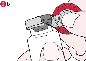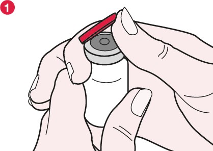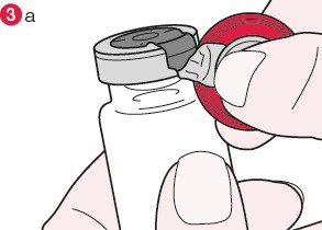 4. Når forseglingen er brutt holdes hetteglasset godt fast og folieforseglingen rives av slik at hele gummiproppen kommer til syne (se figur 4).