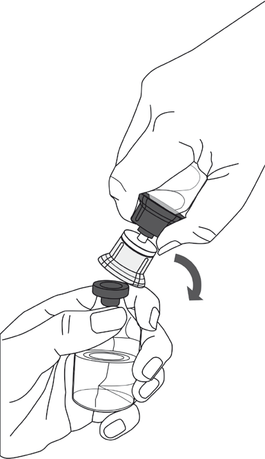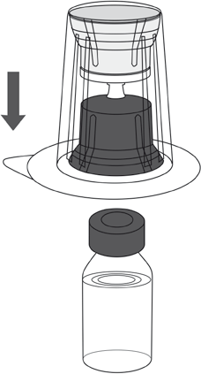 10. Følg trinnene nedenfor for å fjerne hele Mix2Vial-settet fra hetteglasset med Respreeza:
