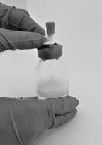 Overfør oppløsningsvæsken til hetteglasset ved bruk av en passende overføringsinnretning. Kontroller at pulveret er fullstendig fuktet.