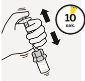 Injiser fortynningsmiddel Injiser alt fortynningsmidlet fra sprøyten inn i hetteglasset. |