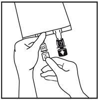 3. Ved tilsetninger, bryt forseglingen på den hvite tilsetningsporten umiddelbart før injisering. Dersom ingen tilsetninger skal tilsettes, gå videre til bilde 5.