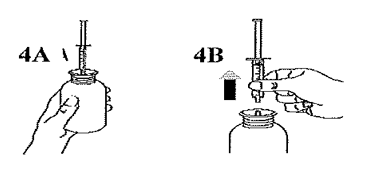 Snu flasken riktig vei (figur 4A). Fjern sprøyten fra adapteren (figur 4B).