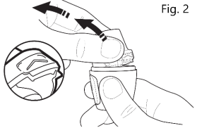 1. Fjern beskyttelseshetten Hold Vertical-Haler-inhalatoren og dra beskyttelseshetten oppover for å fjerne den fra underdelen og eksponere munnstykket som vist (Fig. 1). |