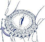 Neste dag dreies den gjennomsiktige ytre skiven med klokken en plass som vist med pilen. Vipp den neste tabletten ut. Husk å ta kun 1 tablett en gang daglig.