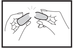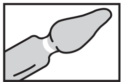 2. Plasser den ene tommelen på ampullehodet og den andre på ampullekroppen, på hver sin side av det hvite båndet