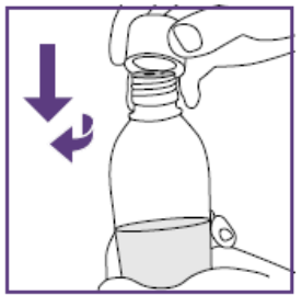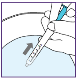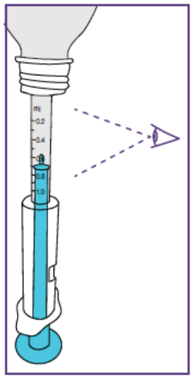Etter å ha satt dosen kan den blå sprøyten brukes til alle administreringer fra flasken med suspensjon som ble klargjort i trinn 1.