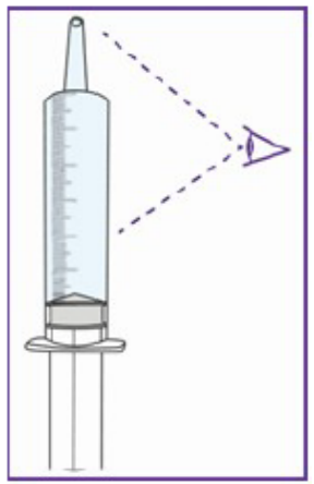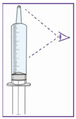 ➔Eventuelle luftbobler beveger seg til toppen når du holder sprøyten vendt oppover.