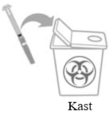 Sett på beskyttelsesanordning for kanylen som beskrevet i trinn 2 e). Deponer hetteglassene, adapteren, kanylene og sprøyten riktig etter injeksjon.