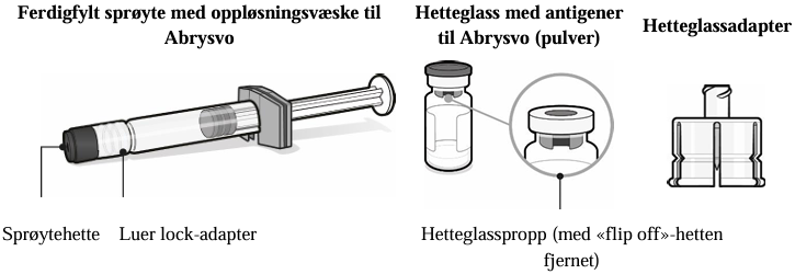 Hvordan Abrysvo ser ut og innholdet i pakningen