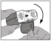 Husk: Du må bare flytte den hvite delen av munnstykket når du er klar til å inhalere en dose av legemidlet. Dersom du klargjør en dose uten å inhalere vil dosen gå tapt.