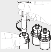 Trykk stempelstangen langsomt inn for å injisere all væsken inn i hetteglasset.