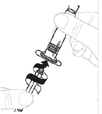 Sett stempelstangen (C) inn i den 3 ml sprøyten (B). Skru stempelstangen med klokken til den er godt festet.