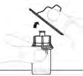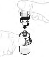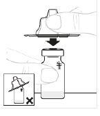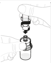 Trykk bestemt ned til adapteren smekker på plass. Spissen trenger igjennom proppen på hetteglasset.
