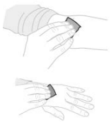 Fjern kanylen. Bøy over kanylebeskyttelsen, den skal smekkes på plass.