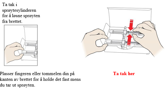 Når du er klar til å injisere, dra nålehetten rett av og vekk fra kroppen din.