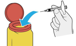 Viktig: Ta av nålehetten først når du kan injisere med en gang (innen 5 minutter), fordi legemidlet kan tørke ut.
