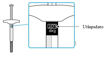 Kontroller utløpsdatoen (EXP) og se om den ferdigfylte sprøyten er skadet.