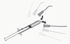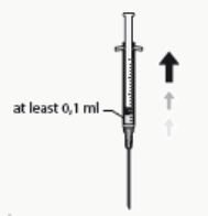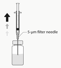 Fest en steril kanyle (18G × 11/2’’, 1.2 mm × 40 mm) med 5 mikronfilter (membran av akryl-kopolymer på non-woven nylon) på en 1 ml steril sprøyte (den sterile kanylen med 5 mikronfilter kan følge med i esken). Før deretter kanylen vertikalt gjennom midten av hetteglassets propp, mens hetteglasset holdes i stående posisjon.