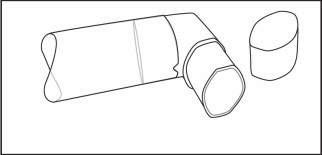 Rengjør munnstykket minst én gang i uken. Det er viktig å holde munnstykket rent for å sikre at medisin ikke samles opp og blokkerer inhalatoren. Ta først av beskyttelseshetten og fjern beholderen fra munnstykket. Skyll med varmt vann gjennom munnstykket til det ikke lenger er noe synlig medisin og/eller skitt. |