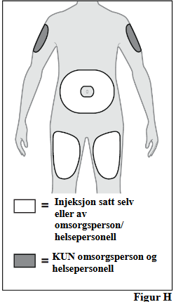 7. Velg et egnet injeksjonssted (se figur H).