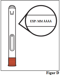 b. Kontroller utløpsdatoen på den ferdigfylte Avtozma-pennen (se figur D).
