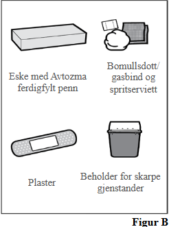 Les og følg bruksanvisningen som følger med din Avtozma ferdigfylte penn før du begynner å bruke den og hver gang du henter ut en ny pakke. Den kan inneholde ny informasjon. Før du begynner å bruke Avtozma må du passe på at helsepersonell har vist deg riktig måte å bruke den.