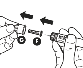 Ta av den ytre nålehetten (G). Behold den til senere. Du vil trenge den etter injeksjonen når du skal kaste pennen.