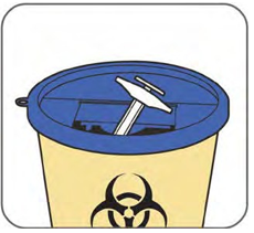 Ta kontakt med helsepersonell for instruksjoner om hvordan du skal kvitte deg med en full avfallsbeholder for skarpe gjenstander. Avfallsbeholdere for skarpe gjenstander kan kjøpes på apoteket.