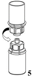 6. Roter forsiktig pulverhetteglasset med den gjennomsiktige adapterdelen festet, inntil alt pulveret er helt oppløst. Må ikke rystes.