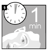 9. Hold pasientens hode skråstilt sidelengs i ca. 1 minutt slik at legemidlet får tid til å trenge inn i øret. Hvis du retter opp hodet eller beveger hodet for raskt, kan det føre til at en del av legemidlet lekker ut av ørekanalen. Dette bør unngås, da det kan forhindre at legemidlet når hele øregangen.