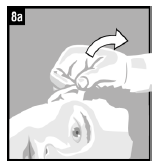 8a. For pasienter med ytre ørebetennelse, trekk forsiktig den ytre øreflippen oppover og utover slik at øredråpene strømmer ned i ørekanalen.