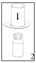 Oppløsningsvæsken skal varmes til romtemperatur. Fjern hettene fra hetteglassene med pulver og væske, vask proppene med en antiseptisk oppløsning og la dem tørke før Mix2Vial pakken åpnes.