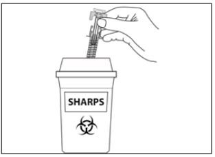 Kast den brukte sprøyten i en avfallsbeholder for skarpe gjestander (en beholder som kan lukkes og ikke kan stikkes hull i). For din egen og andres sikkerhet og helse, må kanyler og brukte sprøyter aldri gjenbrukes.